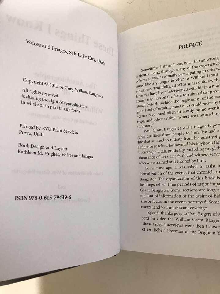 Inscribed The Autobiography of William Grant Bangerter. These Things I Know