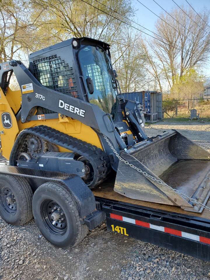 Awesome and very powerful 2020 John Deere 317G track skid steer loader and large 7ft x 14ft hydraulic dump trailer for rent.