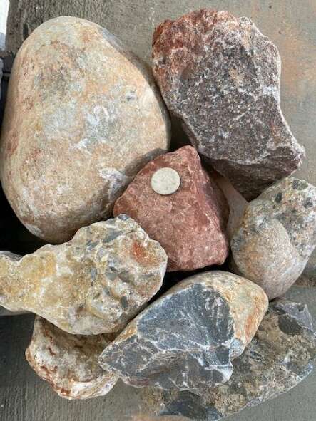 The Crimson Ash is a beautiful landscape rock at an affordable price. The gravels are fully crushed and come in a 1" or 2" size. The cobble rock is blasted so can have some fractured pieces as well as some more round pieces. It is only available in a 3" to 8" size. It is a unique mixture of dark gray, tan and reddish tones. It looks fabulous around everythIing. The color in this rock can vary from more grey at times to more red at times as it is a natural occuring rock.