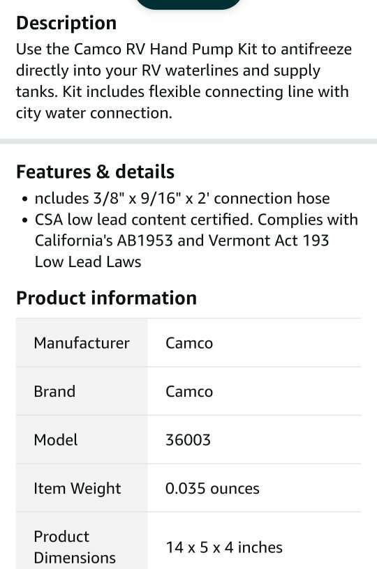 Antifreeze Hand Pump Kit New. Pump antifreeze directly into water lines and supply tanks. See datails and price in pics. Kit de bomba manual anticongelante. Ver fotos.