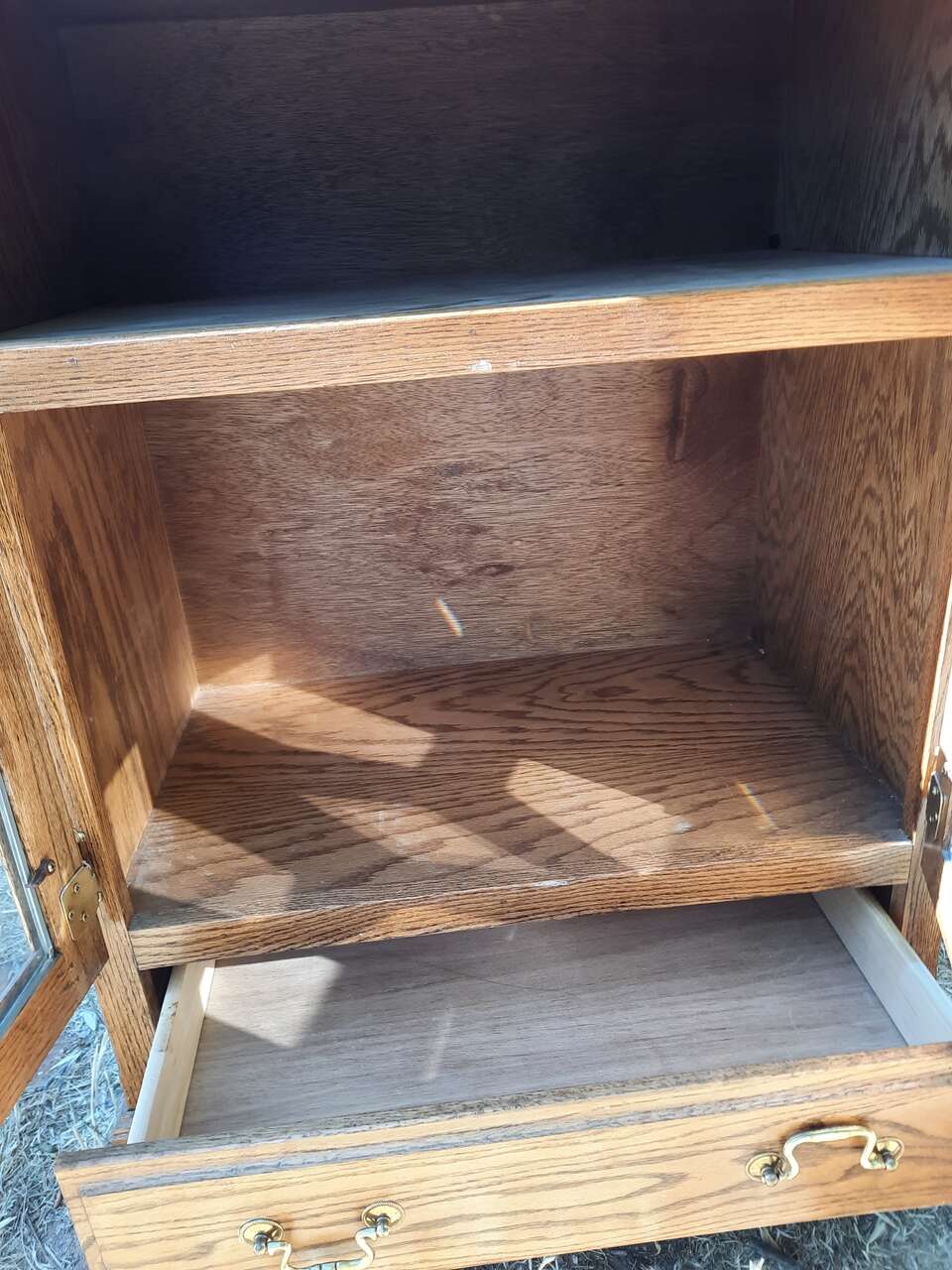 oak looking cabinet size around 17 in w 29 in long 37 in tall located in hurricane same day appointment only if available (as in today not tomorrow or 5 days later) for showing during the week evenings weekends times very no holds