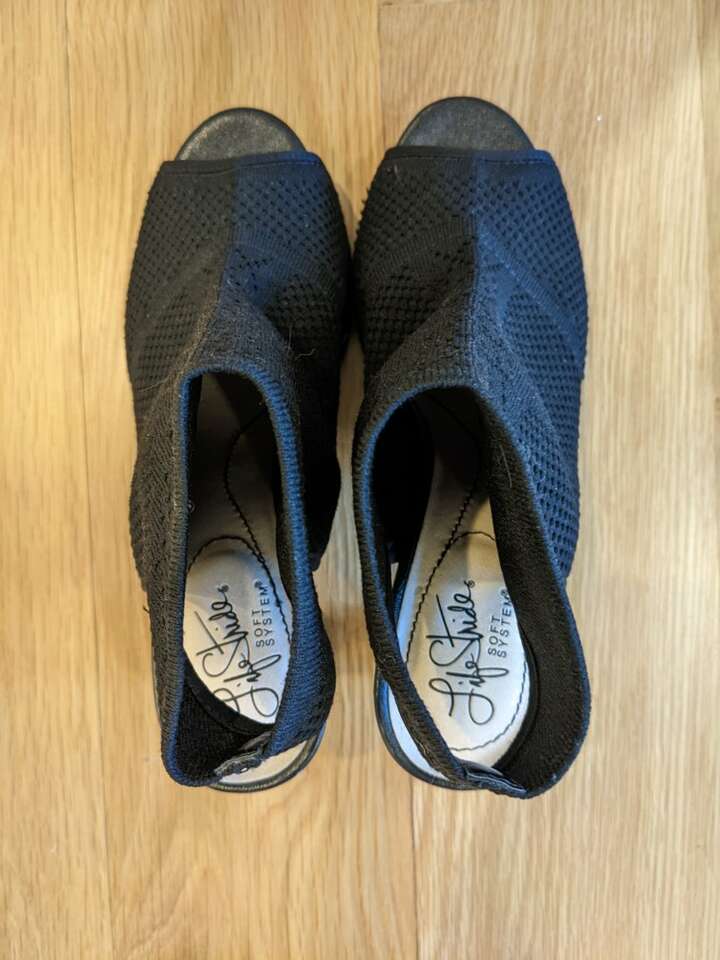 Size 8. Very soft fabric, soft sole. Heels are 3 inches. Call or text any time. Cash only please. I can meet at the Kaysville Library or the South Weber Maverick. Please see my other ads. Thanks!