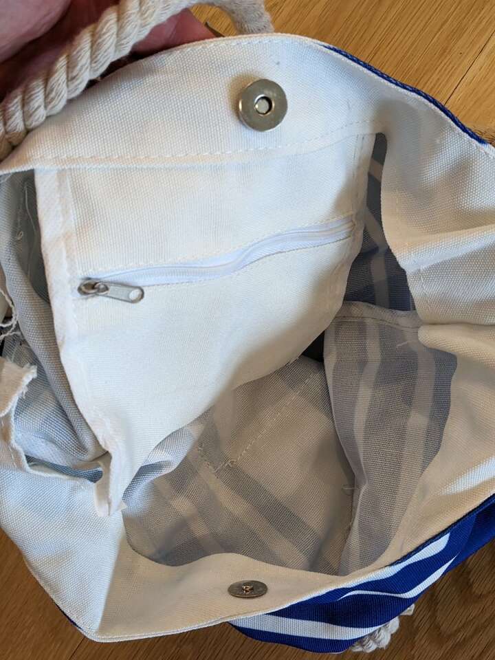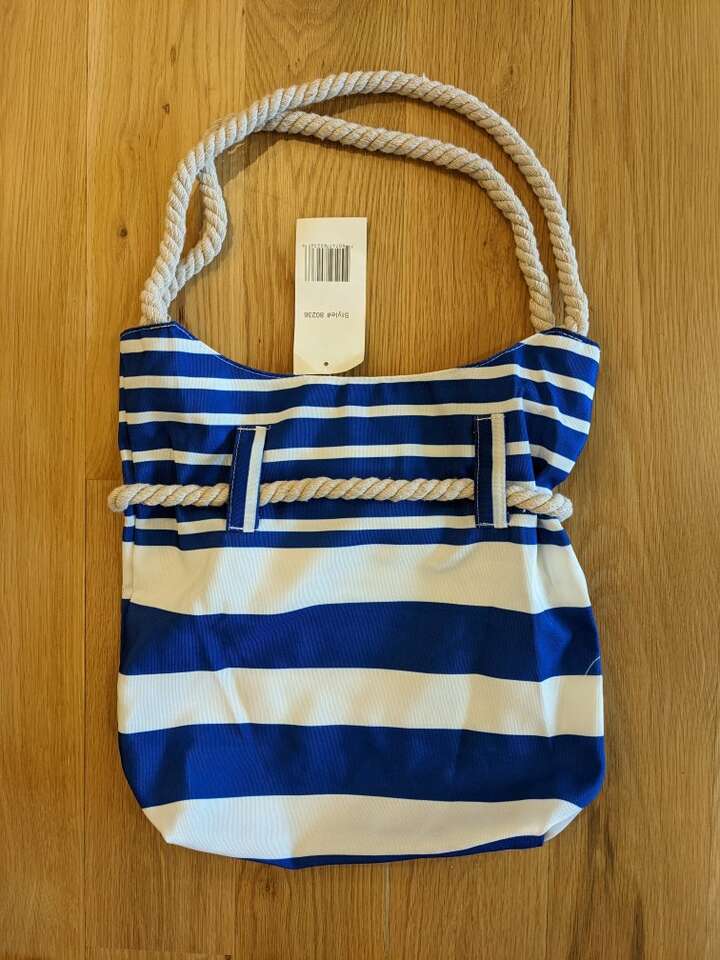 New with tags! Bag measures 15 inches by 16 inches (this measurement does NOT include the handles only the blue and white bag part). Magnetic snap closure with zipper pocket inside (see photos). Call or text any time. Cash only please. I can meet at the Kaysville Library or South Weber Maverick. Please see my other ads. Thanks!