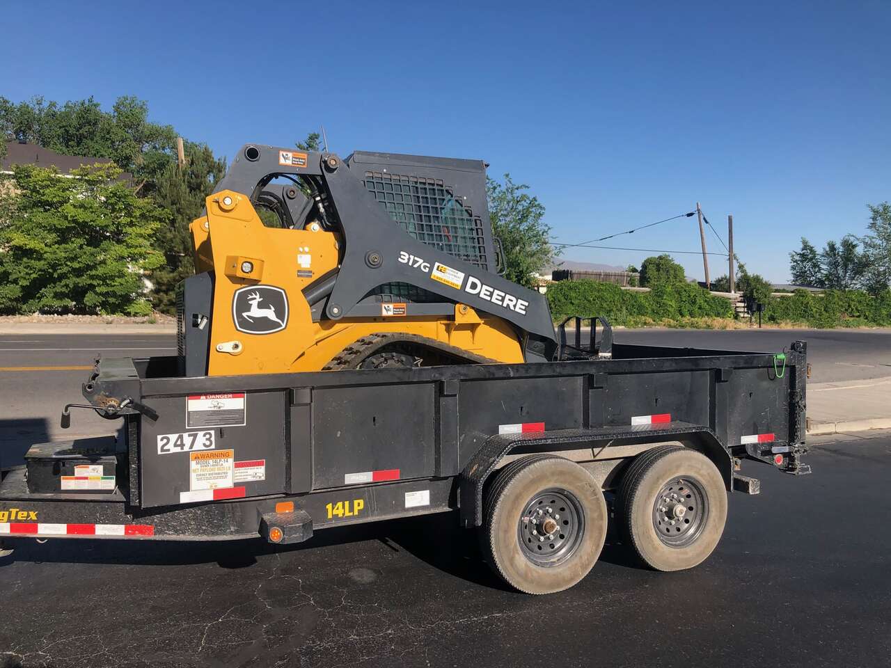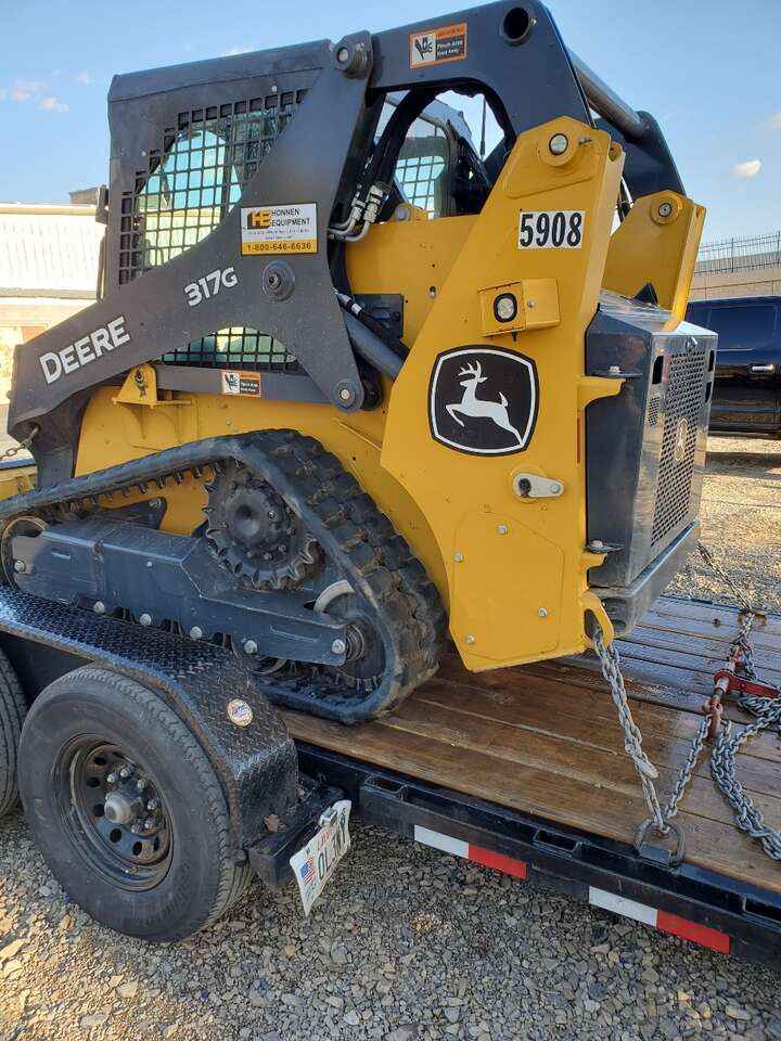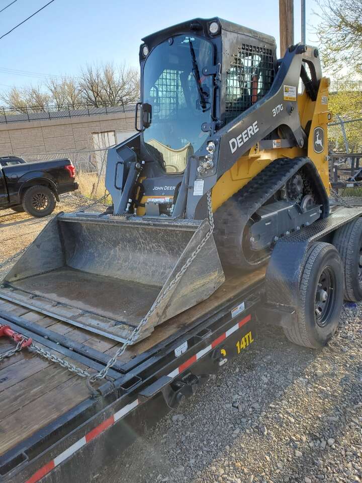 Awesome and very powerful 2020 John Deere 317G track skid steer loader and large 7ft x 14ft hydraulic dump trailer for rent.