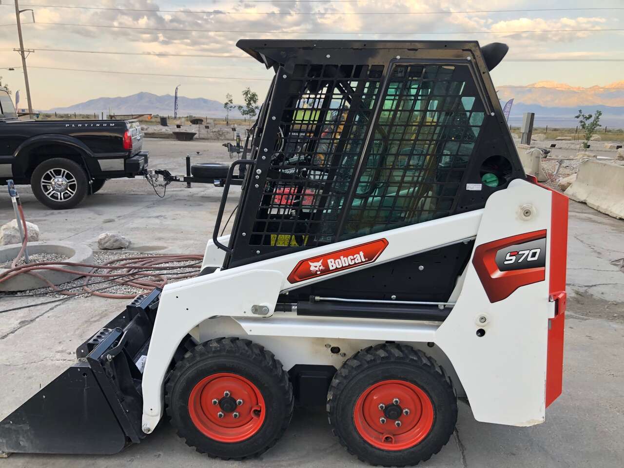 Bobcat S70 skid steer loader for rent. This is an awesome little skid that can get into any of those tight spaces or through narrow gates! Its easy to operate and unlike the uncomfortable stand-on mini skid steers, this has a cab and still only 36” wide!