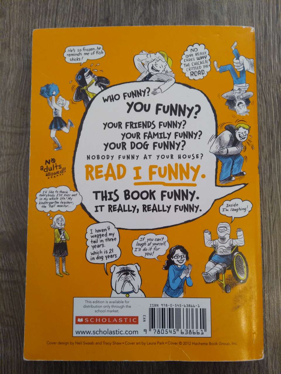 Used, paperback copy of 'I, Funny'-a middle school story- by James Patterson. $4 cash or Venmo. Lots of other kid/tween books. Smoke-free home. Text or call if interested- feel free to ask if there is a specific book you are looking for.