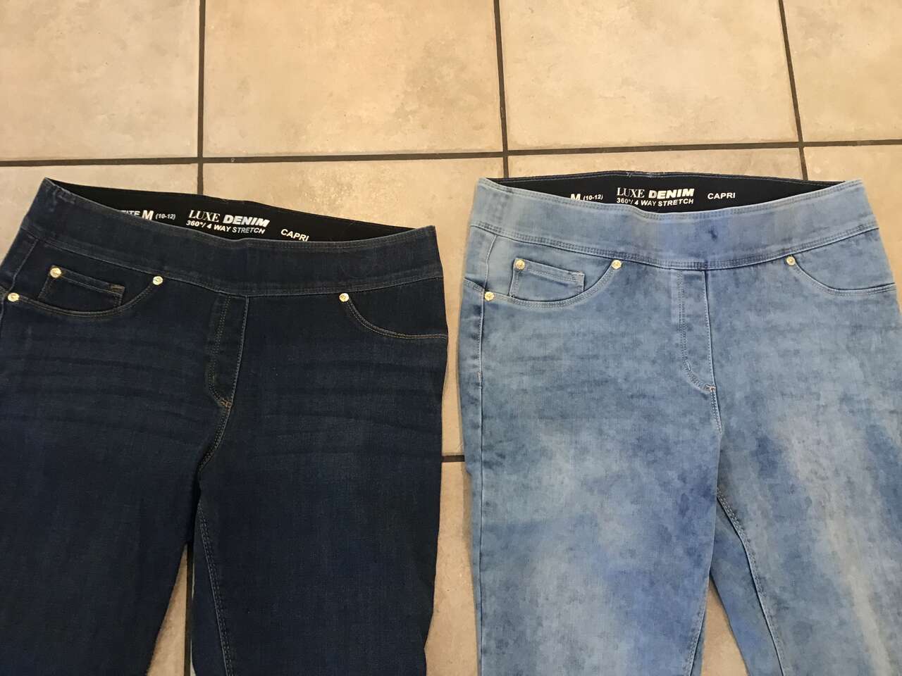 Dark pair is a little shorter petite. These were only worn a couple of times each. Way comfortable pull on