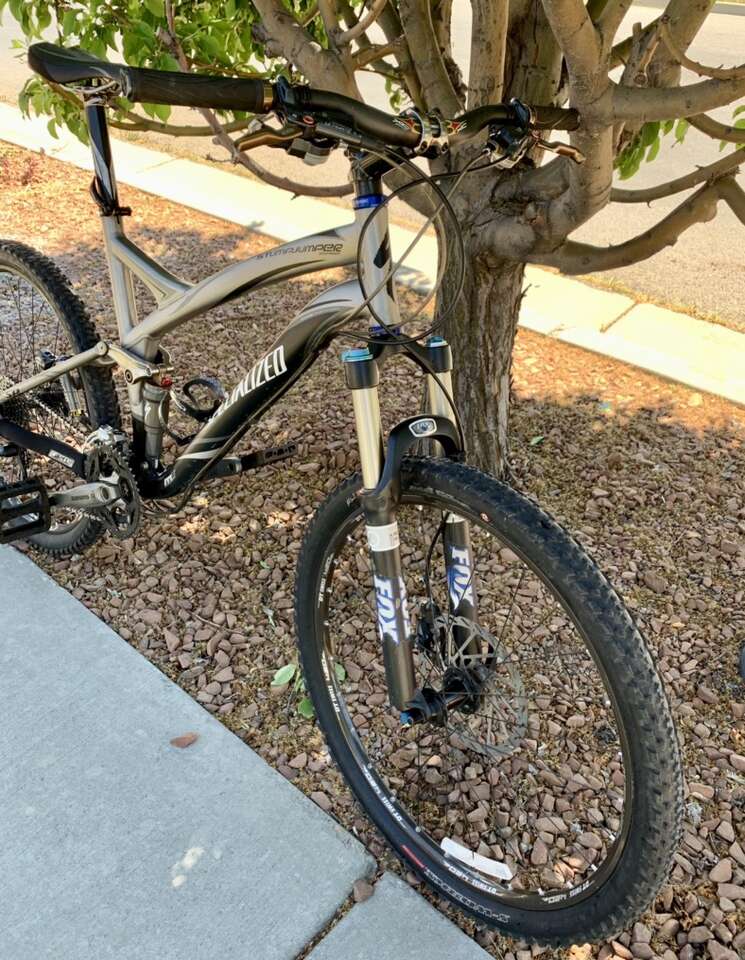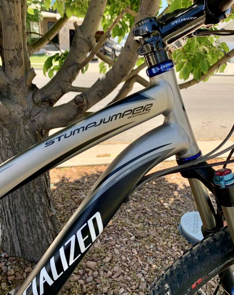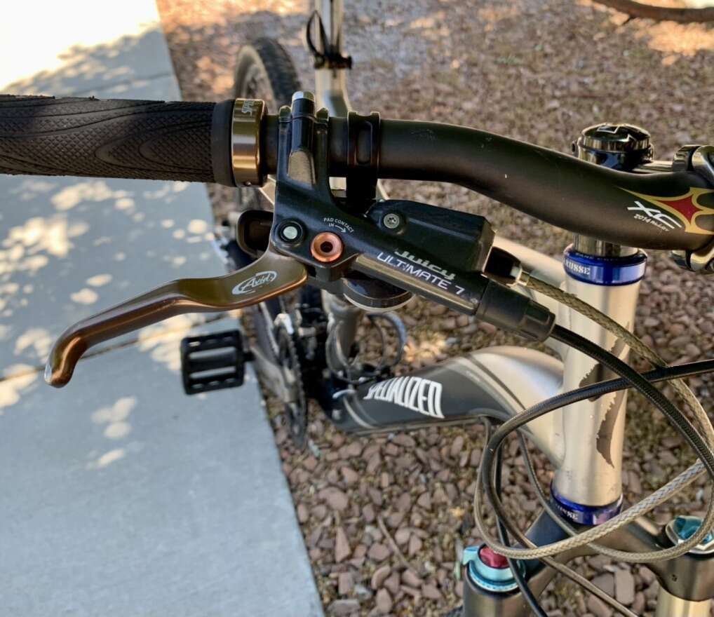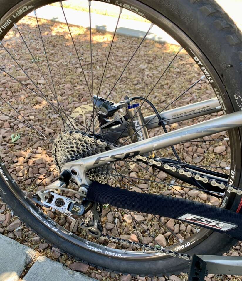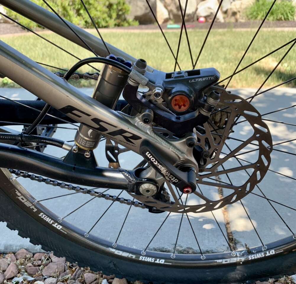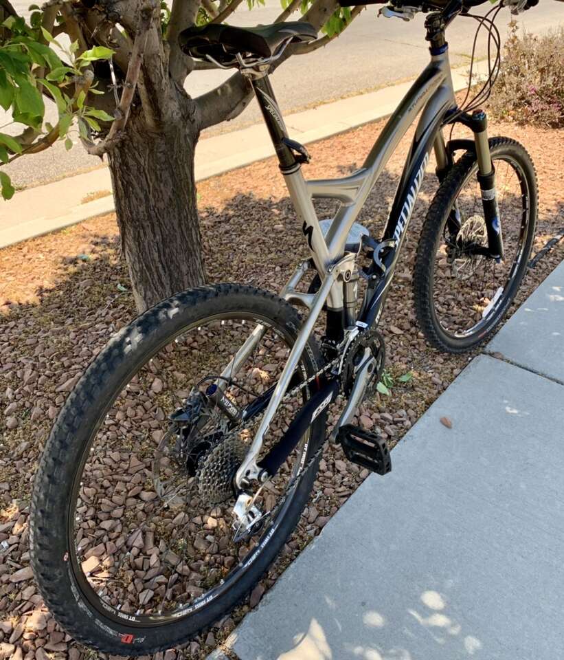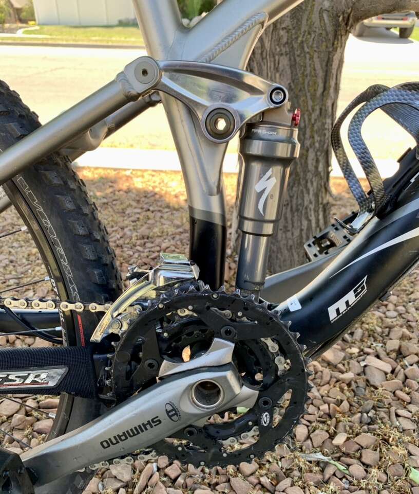 M5 alloy large frame SRAM X-O rear derailer Deore LX front derailer SRAM X-9 shifters Juicy Ultimate 7 Avid hydraulic disc brakes Fox front shocks AFR rear shock FutureShock Brain variable suspension S-Works Captain 26x2 tires DT Swiss 420SL wheels