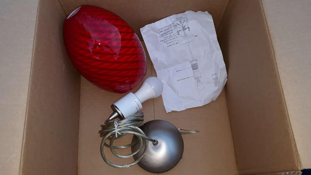 New in box, Beautiful red glass globe hanging fire bird Sydney light, stainless steel, corded pendant by Access lighting, from the Sydney Collection. Hard to find with this color and style of globe. Sells for $110 see more at: