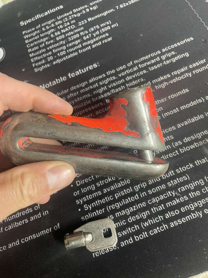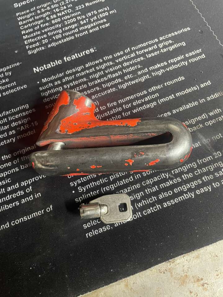 Easy to use as long as you have slotted rotors. Lock up your breaks and prevents a thief to roll away with your bike.
