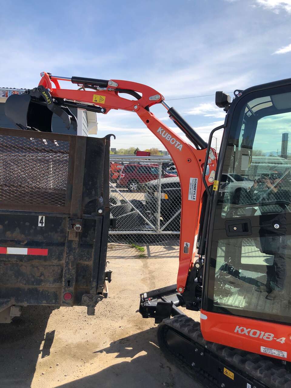 The Kubota KX-18 is easy to tow and weighs only 4,000 lbs, has a 7.5 ft dig depth and can fir through the tightest gates and narrow openings. It retracts down to just 39" wide!