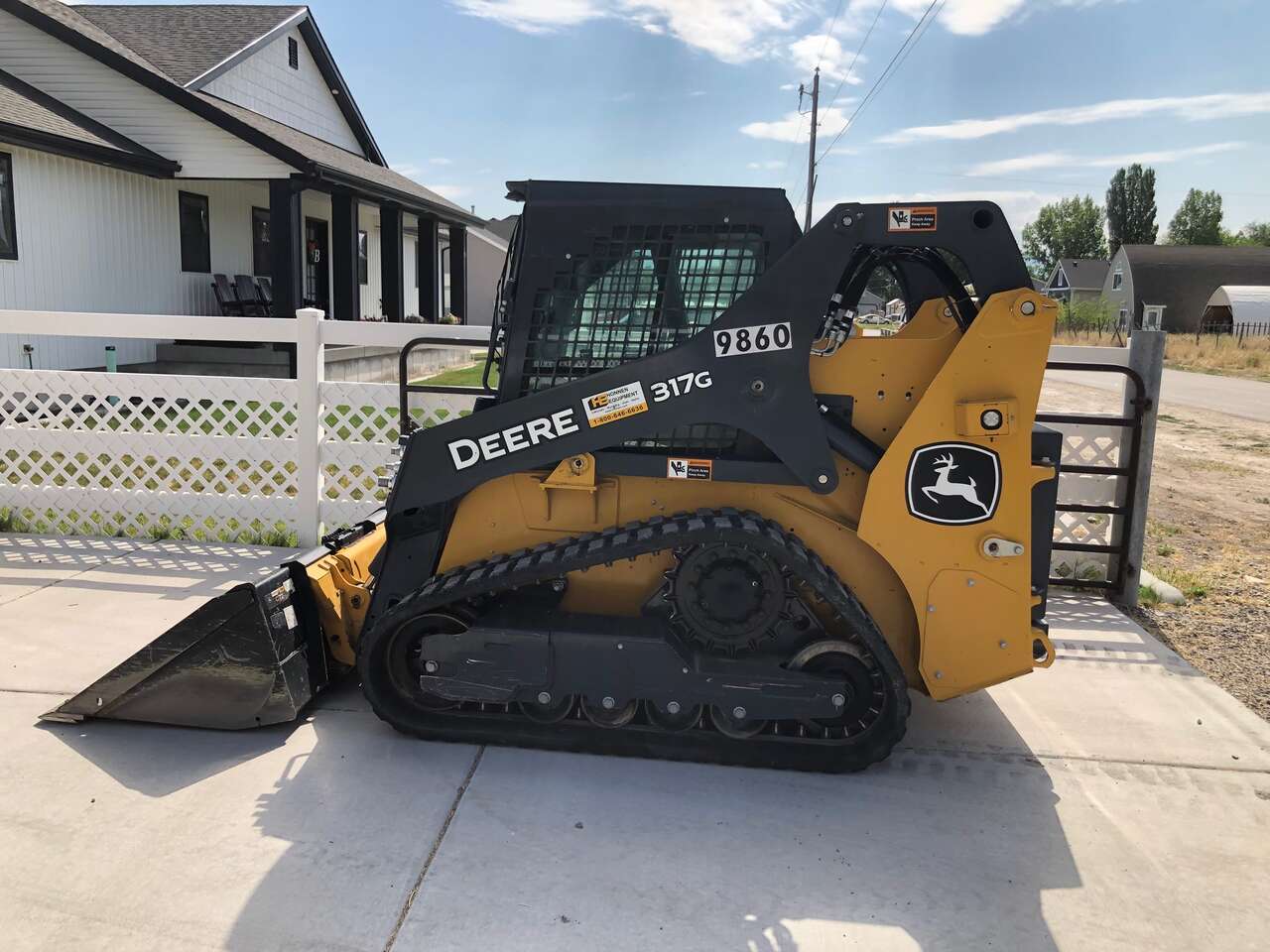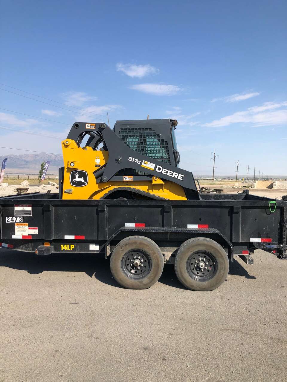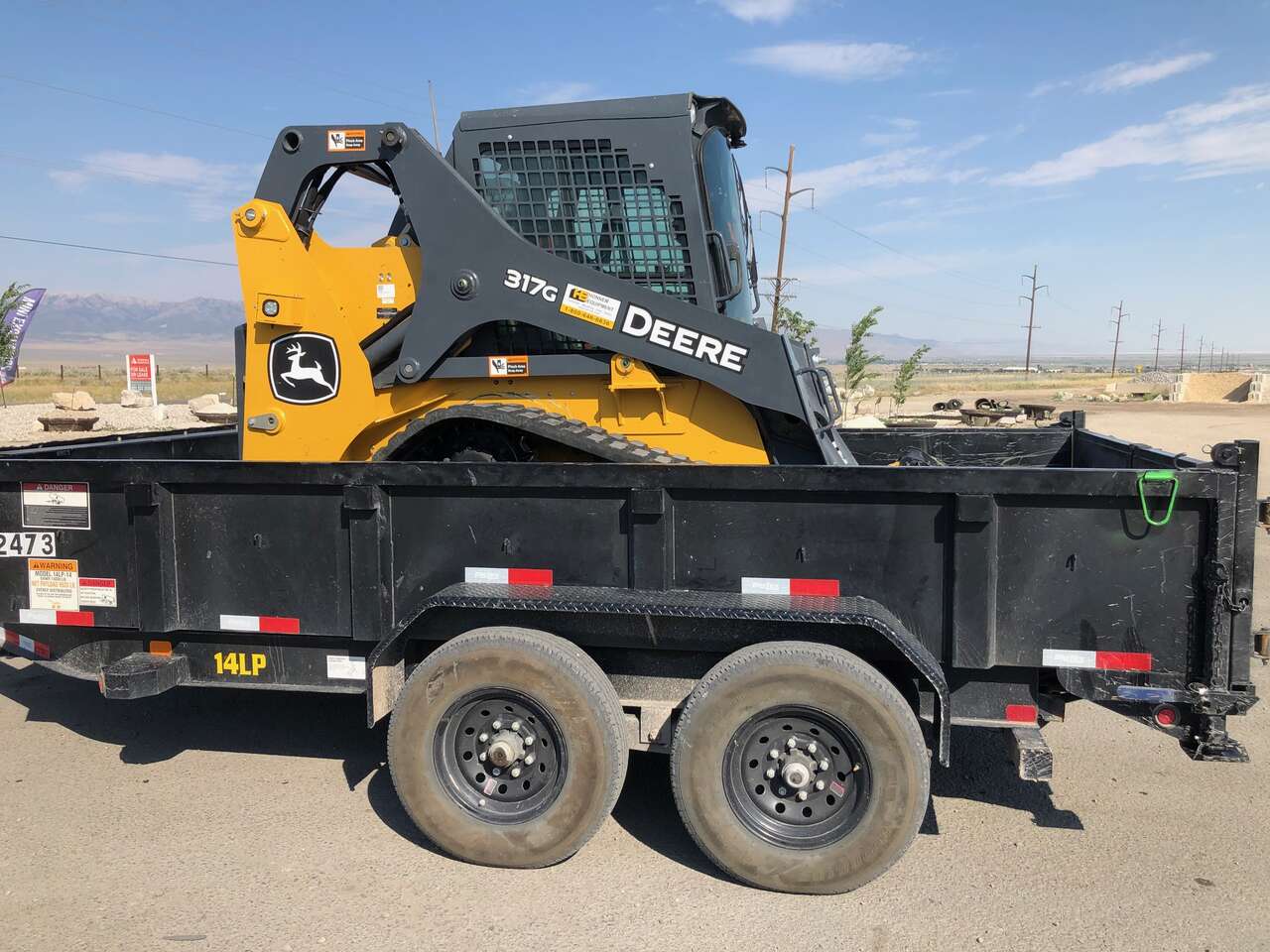 Awesome and very powerful 2020 John Deere 317G track skid steer loader and large 7ft x 14ft hydraulic dump trailer for rent.