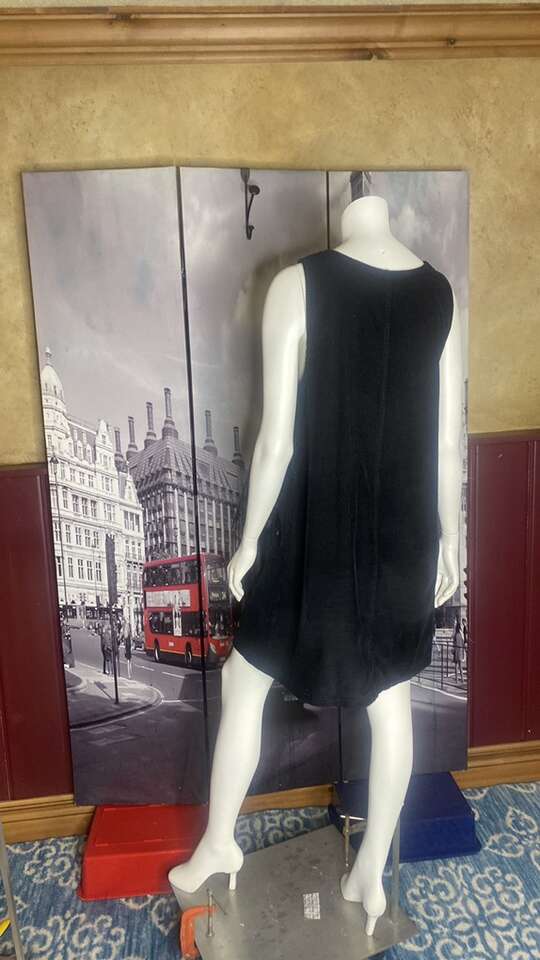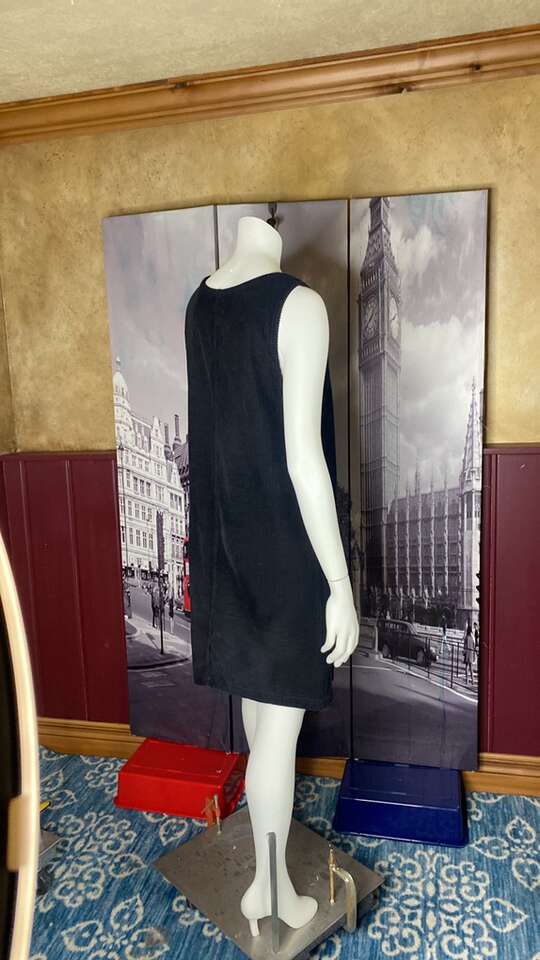 Size medium womens. Has three buttons down both sides two large pockets in front above the knee black