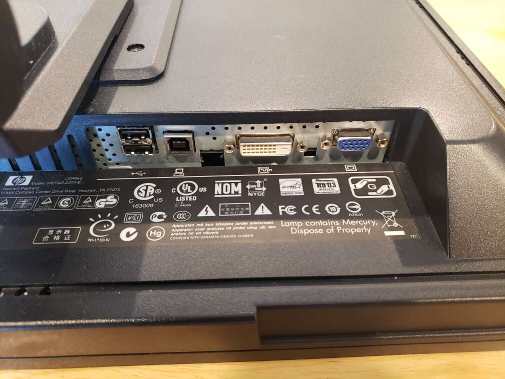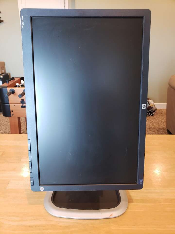 $30 - HP L2245wg 22" Rotating Monitor 22-inch widescreen LCD monitor with a 1680 x 1050 native resolution 1000:1 contrast ratio, 300 cd/m brightness and fast 5 ms response time The L2245wg features a pivoting display so you can work in portrait and landscape mode. With a built-in USB 2.0 hub, you can connect peripherals quickly as you need them. There is a VGA port and a DVI-D (dual link) connector with HDCP support