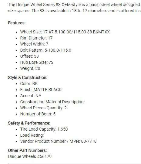 New Matte Black Rim 17" See photos for additional specs Cash or Venmo only- text preferred