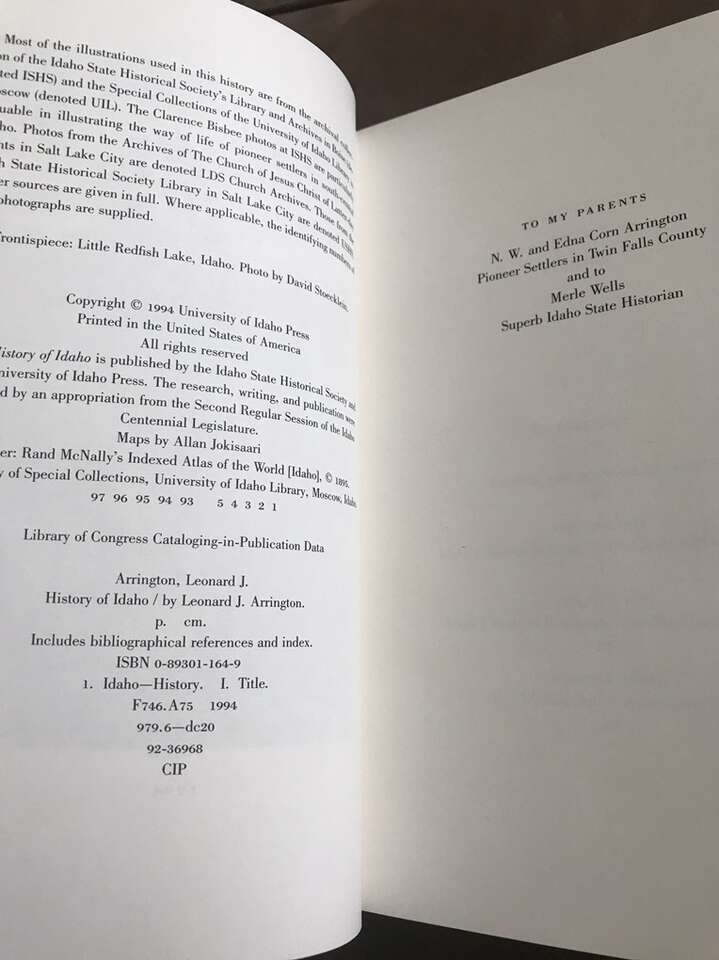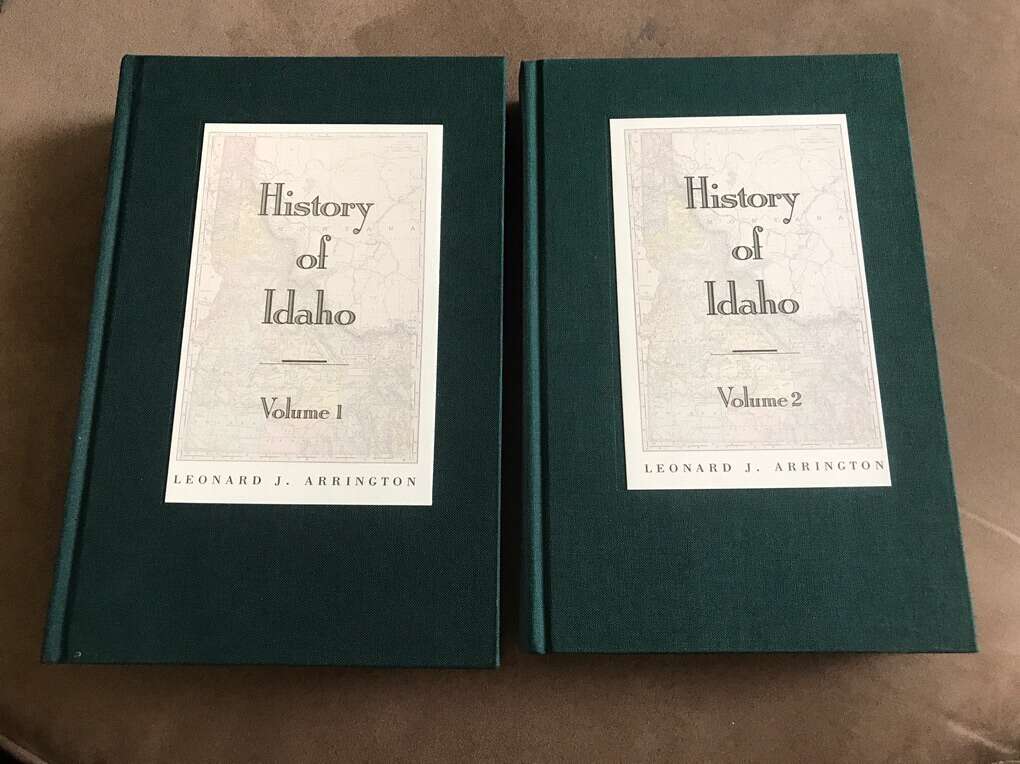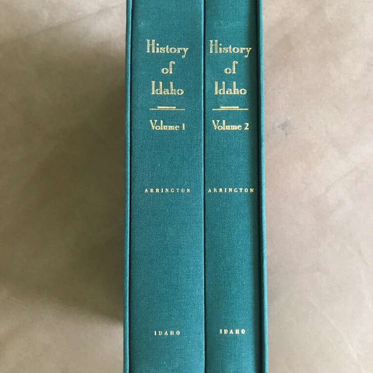 Inscribed History of Idaho set. By Leonard Arrington. Cloth covers in a slip case. Both books are in like new condition. Slip case is in very good condition with some shelf wear.
