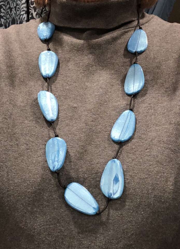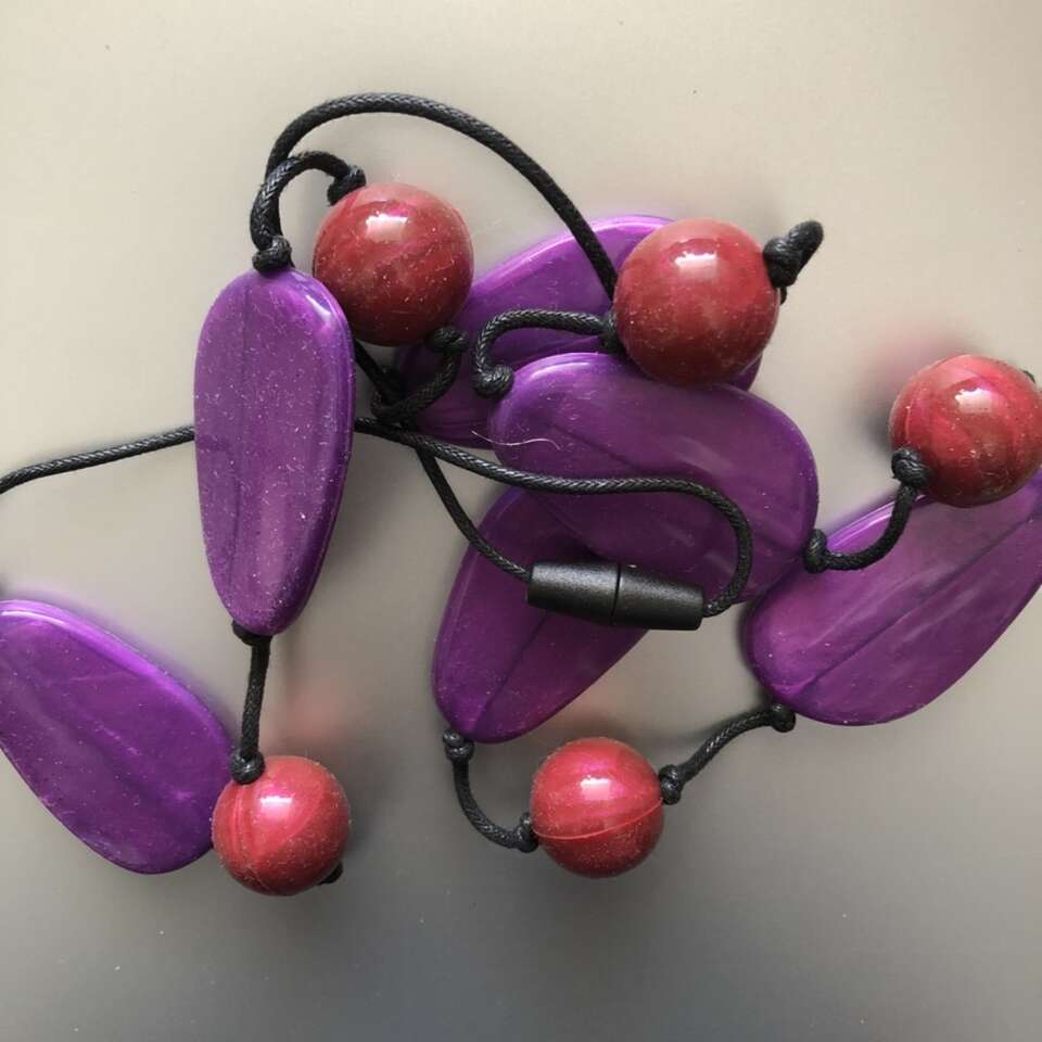 Teething babies are in constant pain and are grumpy & unhappy - one thing that gives them comfort is chewing. Now mom can wear a beautiful Gem-toned teething necklace that’s perfect for baby to grab and chew to their hearts content, and it cannot get dropped & lost if it’s around mom’s neck. - Imported from England, this baby-friendly jewelry is pretty enough to wear even if you don't have a baby and it protects baby from other jewelry that they can grab, break and swallow. It’s a fantastic accessory for anyone that holds a teething baby. Shiny silicone gem-toned beads are non-toxic: are lead, latex, PVC, BPA, & Phthalate FREE & nearly indestructible. My Daughter has a necklace that went through her 2 youngest & it still looks new. Can be washed in soapy water or in a dishwasher. Many styles available, some shown in photos. Delivery available to a convenient location when in your area for $5.