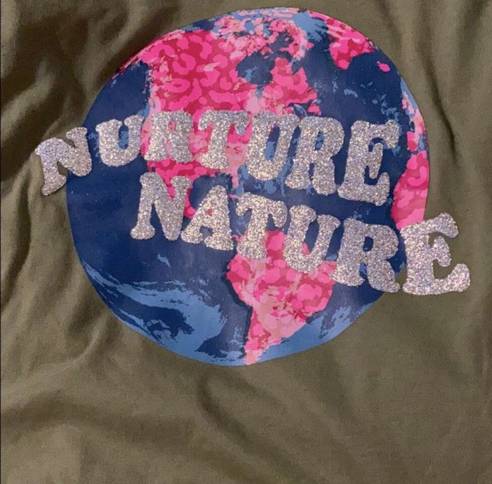 Brand new with tags Short sleeve Nurture Nature in silver glitter Olive green color Graphic of the world Back has criss cross opening- very cute 60% cotton 40% polyester I have size Medium, Large and XL $5 each Located in american fork Cash/Venmo