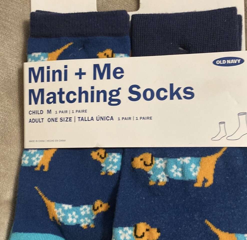Brand new in package Size- Child- medium Adult one size Blue with cute print Fun to match dad on socks Crew style sock