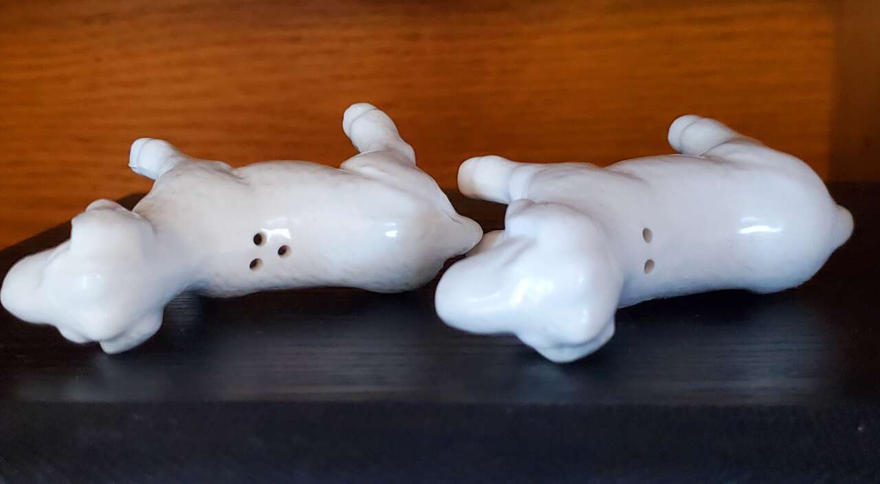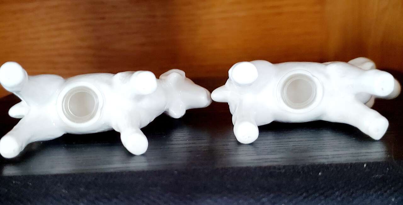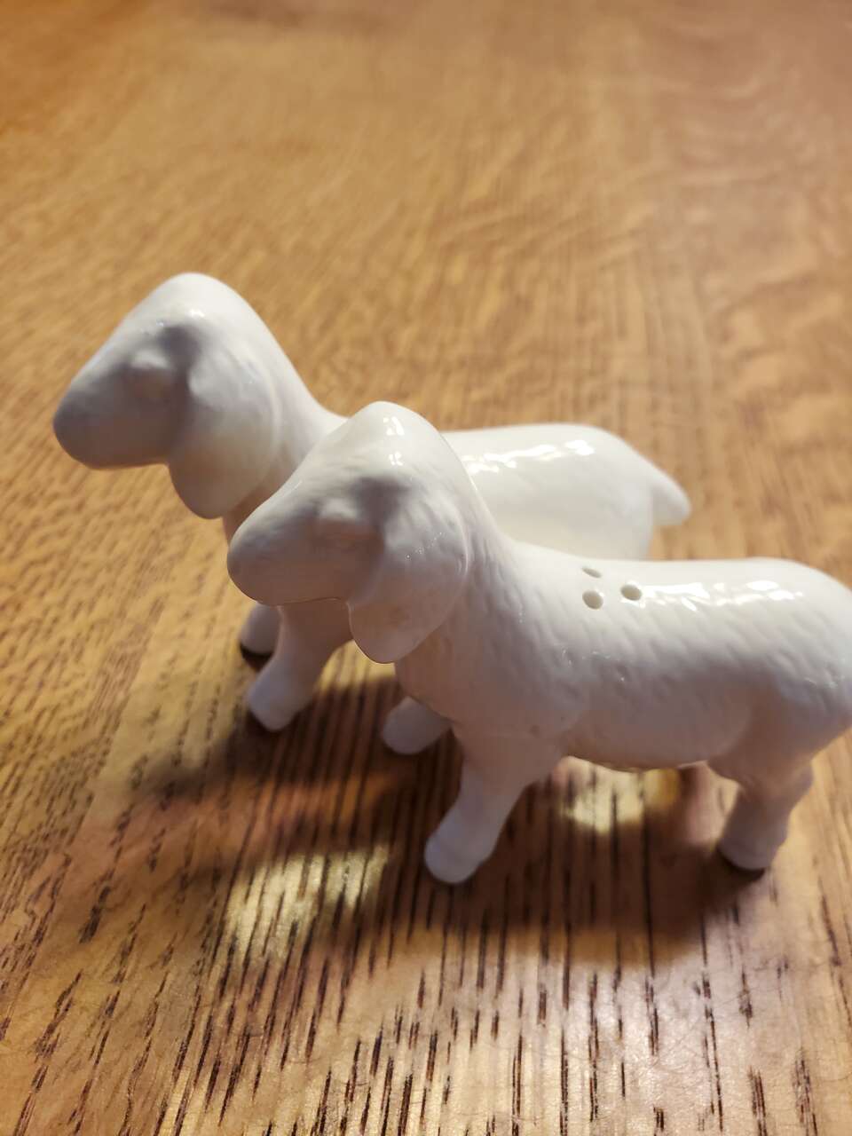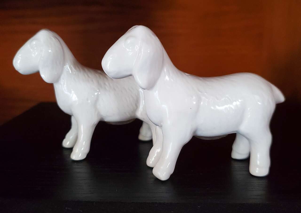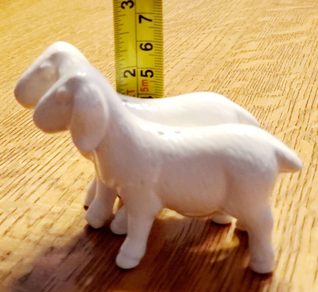 White Magnolia Goat Salt and Pepper Shakers. Cash Only, No Codes.