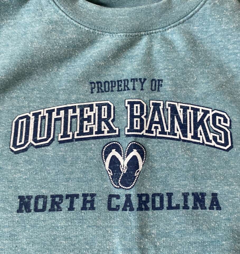 Outer Banks, North Carolina sweatshirt in a teal blue color, size YS in great condition. Smoke-free, pet-free home. $15, cash only please.