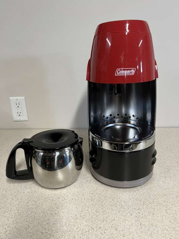 Brand new Coleman propane Instastart- Quikpot 10 cup coffee maker with brand new heavy duty CARRYING BAG made just for the coffee maker. Perfect for hunting, fishing, camping, tailgating or anything else. Uses 1 pound propane bottles or big tank with an adaptor hose, great coffee with no power or fire needed. Pezio spark igniter makes it really nice. The bag also has a net to hold the propane bottle. STAINLESS STEEL carafe so it won’t break.