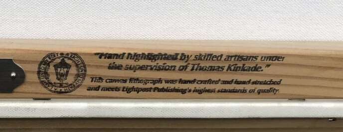 Using acid free, museum quality canvas, every Thomas Kinkade Studios Limited Edition Canvas is hand-retouched by skilled artisans, giving the painting a look almost identical to the artist’s on-easel original. Vibrant colors, rich textures and color tones accurate to Thom’s original brushstrokes are the hallmarks of your finished piece.