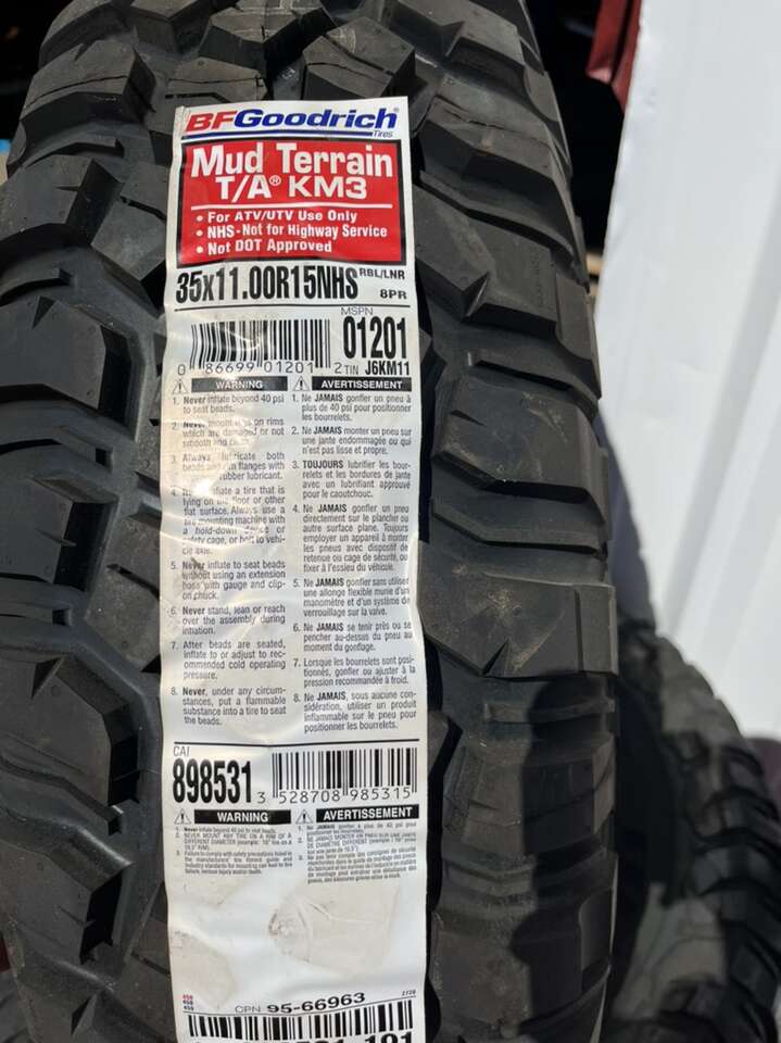 Brand new set of BFG KM3 tires! Tire size is 35x11r15. Call or text 435-279-5346 for discounted price and ask for Dawson!