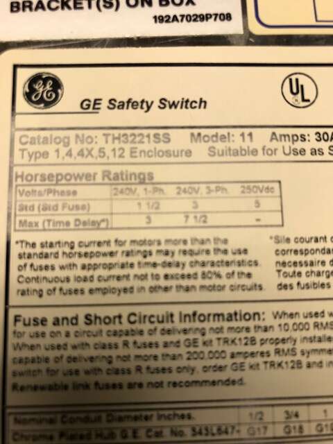 30a 240v 1PH Stainless switch