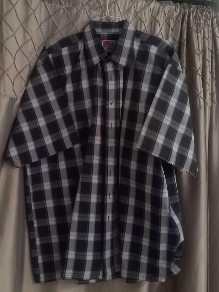 Price Reduced This is for a lot of five Men's short sleeve 2XLT button front shirts ($45 for all five). These are extra extra large tall. They recently came back from the cleaners, after being washed, pressed, and lightly starched. Ready to wear! They are from a smoke-free home and are in excellent condition. Sold as a set of five.