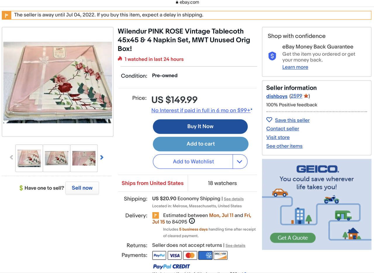 Items are from a smoke free, pet free home. Most often anything I have listed at $10 is the final price and will not go lower. Prices are subject to change, sometimes higher, sometimes lower.