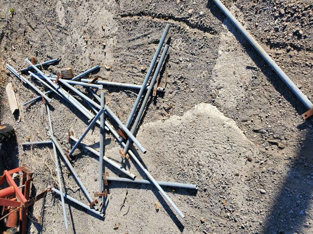 1/2 and 3/4 inch pipe. Long pieces are welded together on one end and the short pieces have holes drilled in them. These were parts for wheel lines so the wind wouldn't roll your lines. Use them for what you want. 100.00 CASH ONLY OBO for the pile.