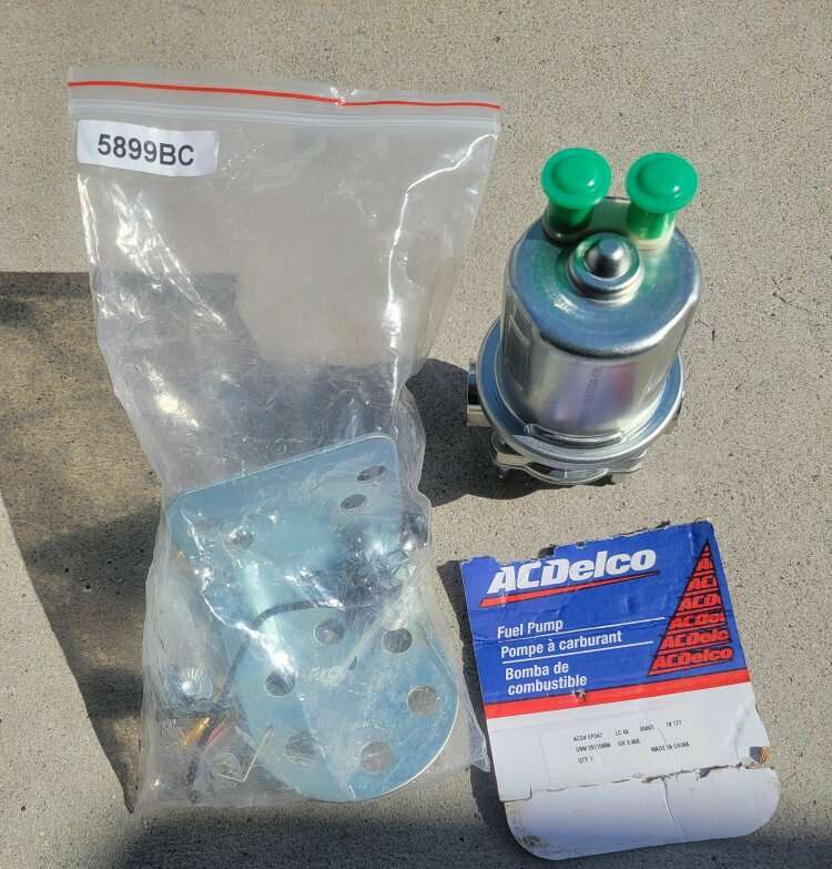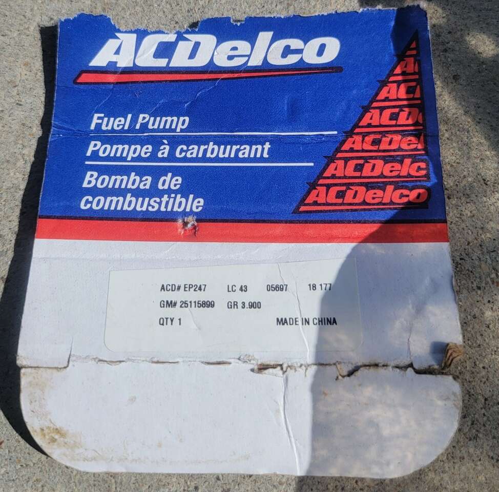 NEW AC Delco Fuel pump universal 8 psi 76 gph New never used Not in Original box. More than 5 available 2 pumps for $90, OR 3 pumps for $125, while supplies last. Sold as is Manufacturer info below. ACDelco 25115899: Fuel Pump, Electric, High Output, 7 To 8 psi Maximum Pressure, 1/4 in. NPT Female Threads Inlet/Outlet, Each - ACDelco Gold high-output electric fuel pumps are heavy-duty 12 V electric rotary pumps, and high-quality alternatives to OE parts. They flow 72 gph at 6 to 8 psi outlet pressure to deliver the right amount of fuel to your vehicle's injectors. These fuel pumps will meet the fuel requirements for high performance cars, RVs, and street rods. Fuel Pump TypeElectric external Fuel Pump Voltage12 V Flow Rate72 gph/273 lph Fuel Pressure (psi)8 psi Fuel Pressure Regulator IncludedNo Sending Unit IncludedNo Fuel Pump Inlet Size1/4 in. NPT Inlet Quantity1 Inlet AttachmentFemale threads Fuel Pump Outlet Size1/4 in. NPT Outlet Quantity1 Outlet AttachmentFemale threads Gasket IncludedNo Wiring Harness IncludedNo Mounting Bracket IncludedYes Mounting Hardware IncludedYes