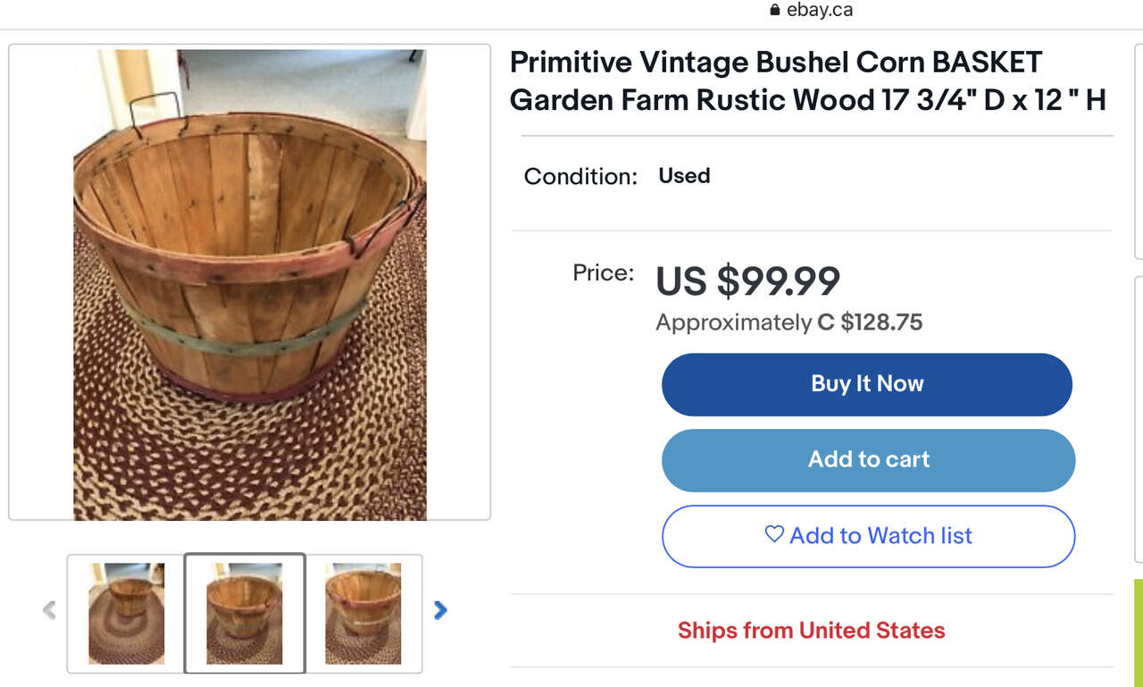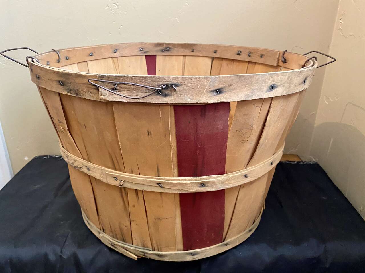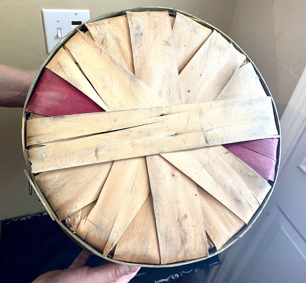 Vintage 1950s LARGE FANCY (Red Slats) Bushel Farmhouse Basket - Compare @ $100 - See Photos. I always wanted a lid as shown in the photos, they can be found online. The ones where they have stained some of the split wood were considered to be fancy display items. It's rare to find one with the vivid red like this one. Due to downsizing I am selling some great items.