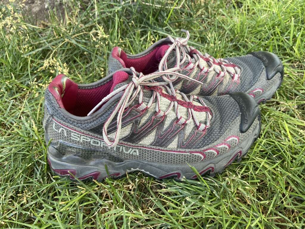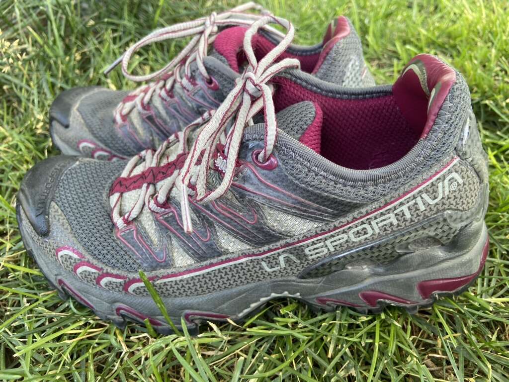 Lasportiva women’s size 7.5 that fit more like a 7. They are two colors of gray with plum trim. They have a rubber kickplate on the front of them and are in amazing condition. See photos for details. I take cash or Venmo. Text is best. 8012014446.