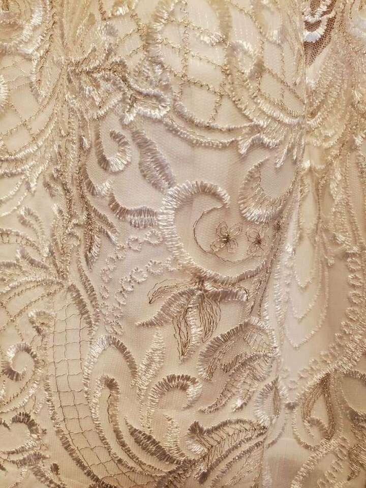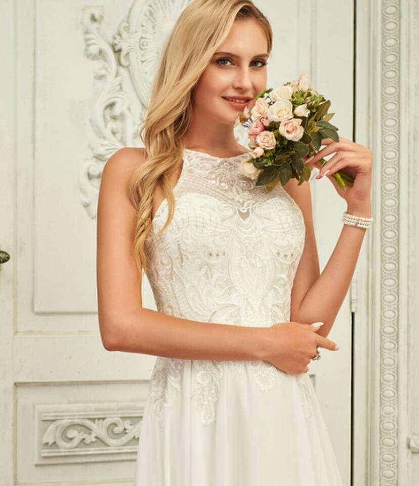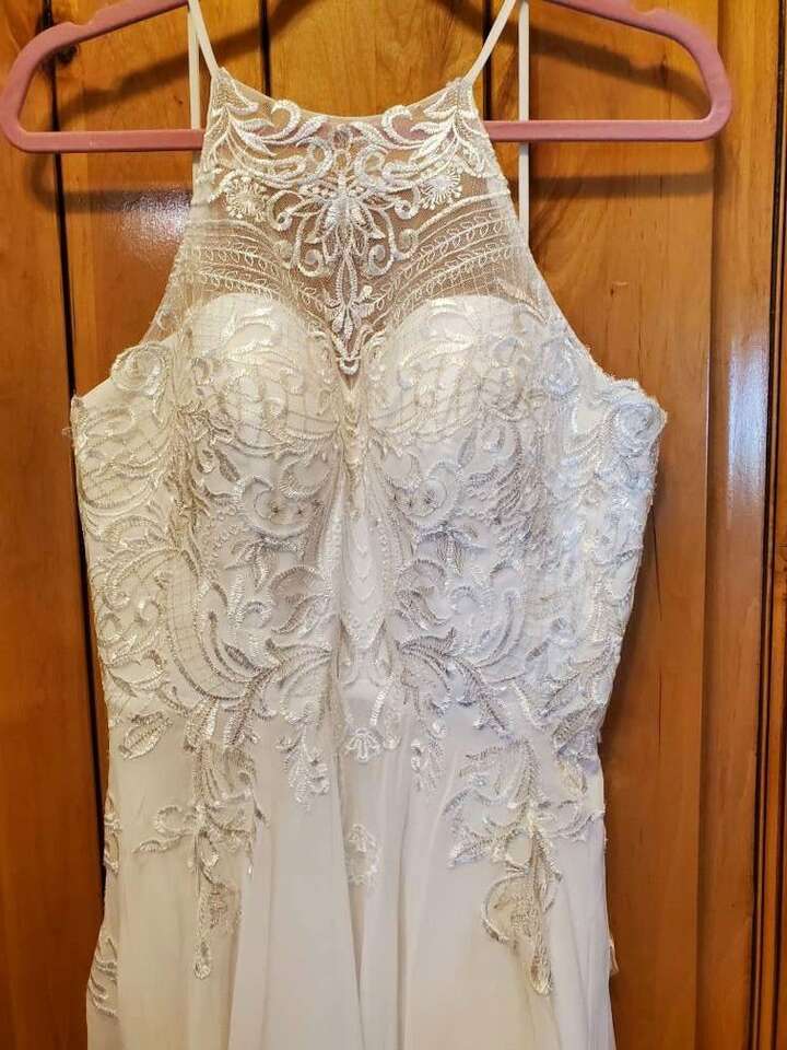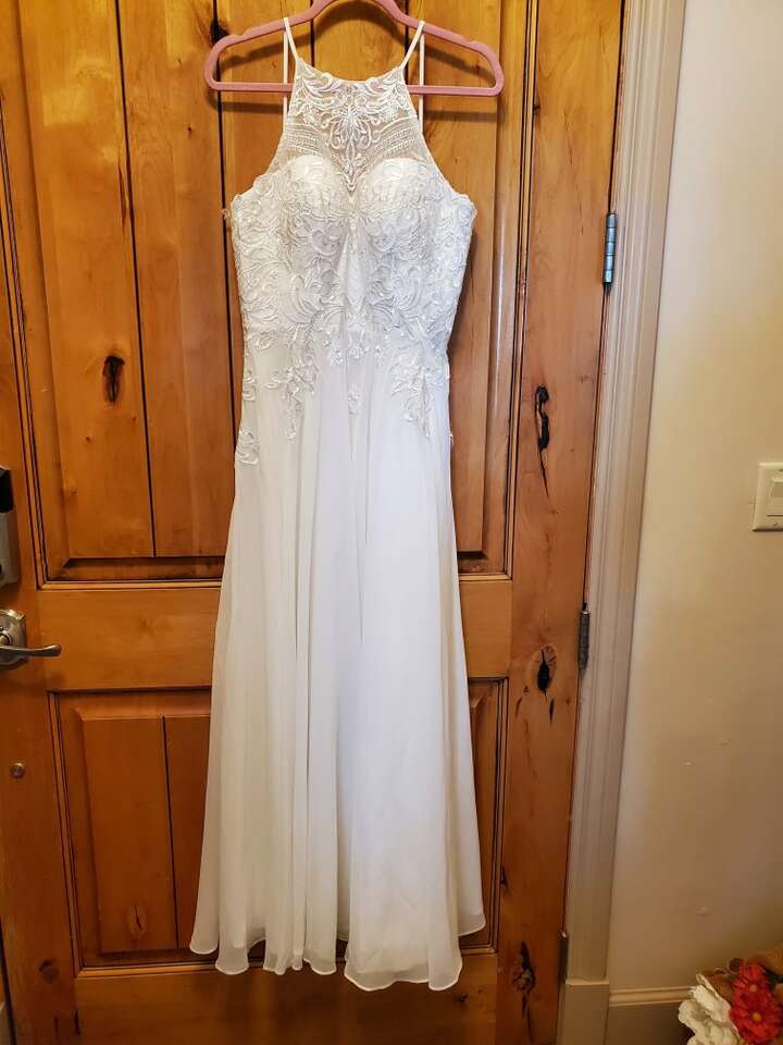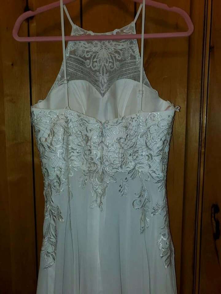 New A-Line Scoop Neck Floor-Length Chiffon Lace Wedding Dress Built in Bra Bust: 34.50inch Waist: 27.50inch Hips: 37.75inch Hollow to hem(front): 59.00inch SZ 6 VENMO or cash Check out my other Wedding dresses