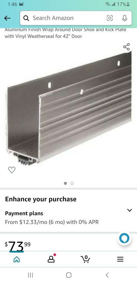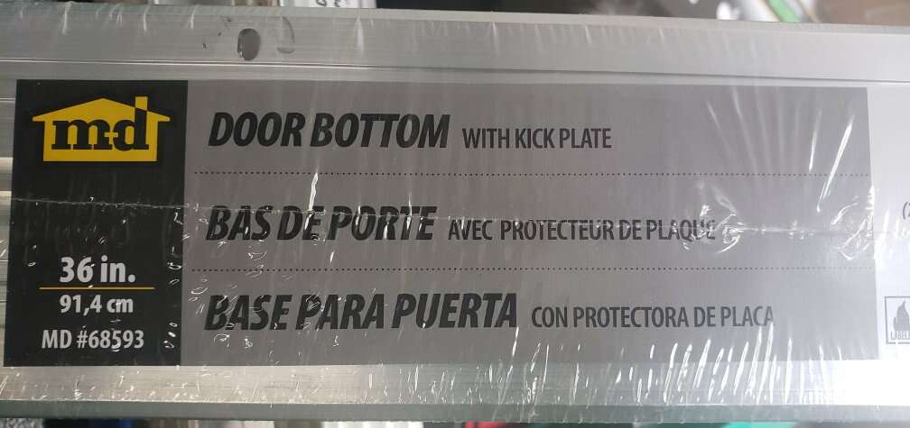 New MD 36" door bottom with kick plate, aluminum, fits 1-3/4" thick doors.
