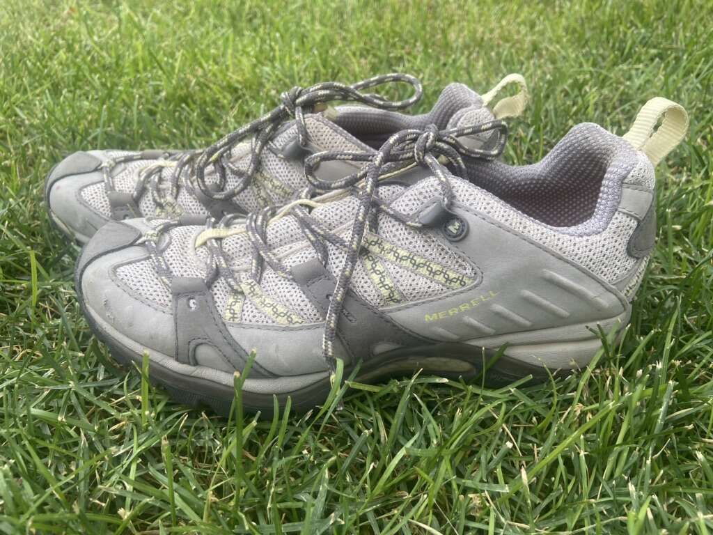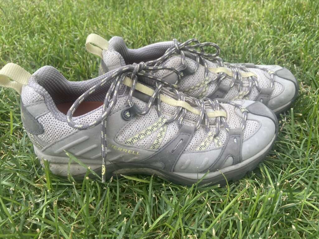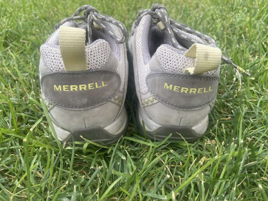 Merrell women’s size 7.5 gray, ecru & pale yellow hiking Shoes. They are leather and mesh. They are in excellent condition. See photos for details. I take cash or Venmo. Text is best. 801-201-4446.