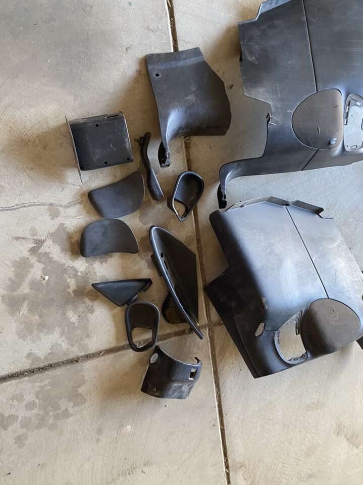 Good interior parts for 94-04 Mustangs, came from convertibles but most will fit coupes as well -black steering wheel airbag, $100 -also In tan, I have Center console, door panel, carpet, rear seat in vinyl, kick panels, Convertible rear side panels, dash plastics and panels, steering wheel with airbag (grip is worn but useable) $best offers -in Black, I have kick panels, door panels (trimmed for the Mach sound system), dash plastics and panels, airbag $200 for all all best offer, email and ill get back with you.