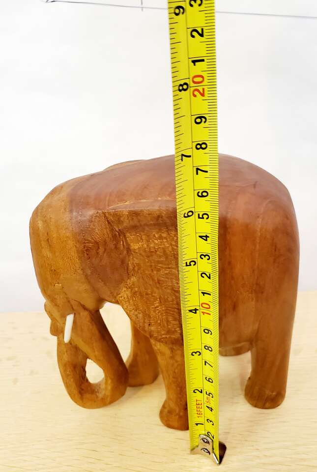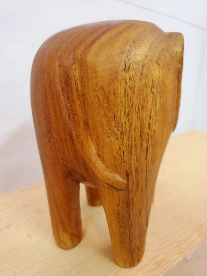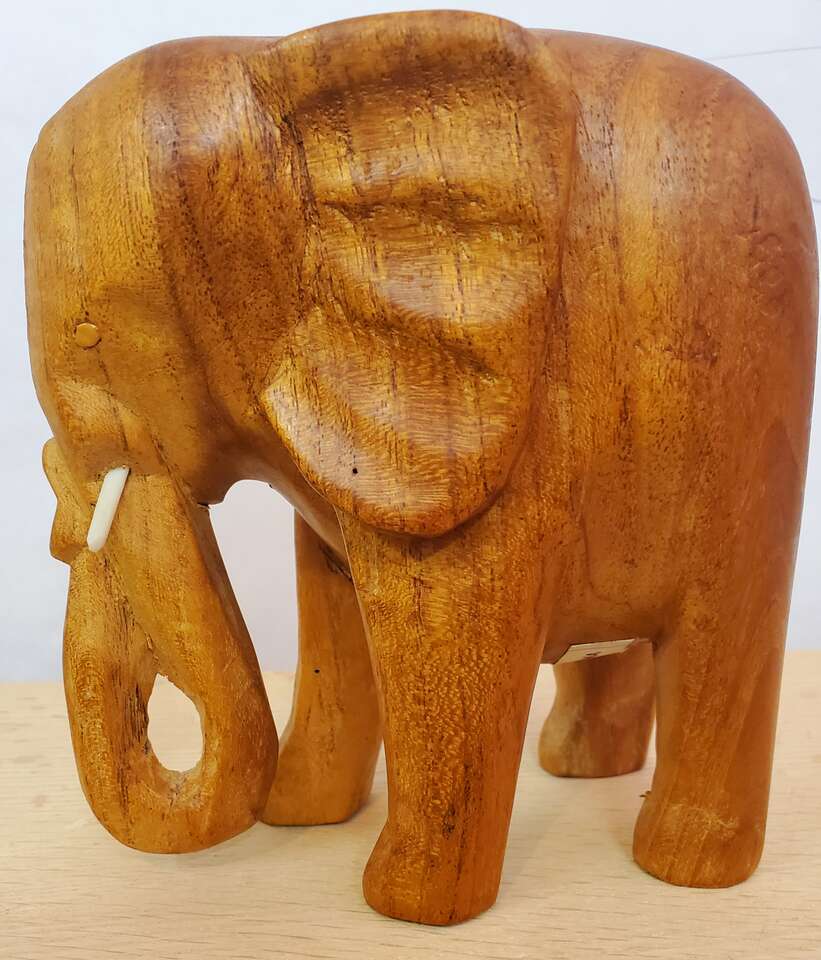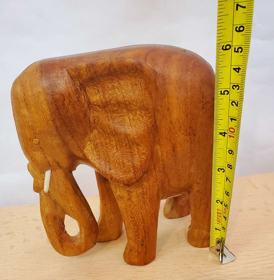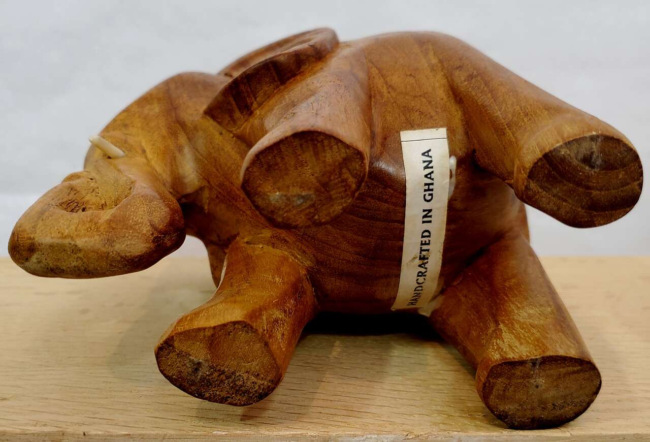 Vintage Elephant Figurine with Tusks Carved in Ghana, Solid Wood, Safari Decor 6" tall. Cash Only, No Codes