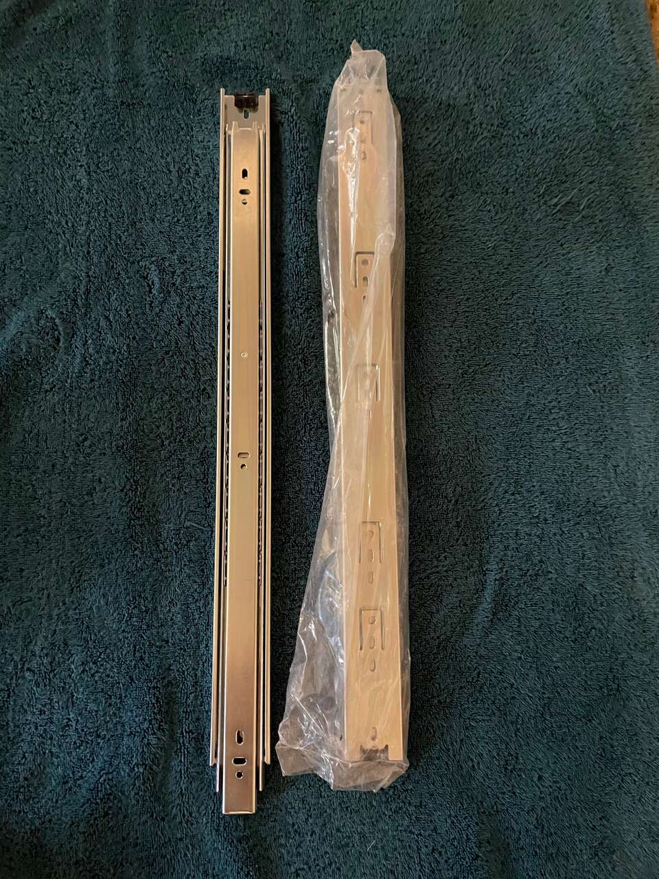 22 IN DRAWER FULL EXTENSION SLIDE ROLLERS NEW WITH BALL BEARINGS 10.00 A SET. HAVE 10 SETS AVAILABLE 801 726 9449