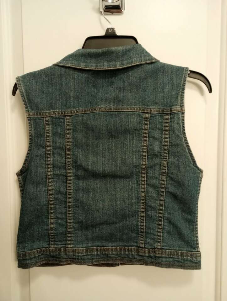 Teen's gently used, denim vest with buttons. Size medium. Feel free to try on before you buy. Smoke-free home. Excellent condition.$12 cash or Venmo. Will hold with Venmo. Text or call if interested. Check out my other ads. Lots of other teen girls clothes!