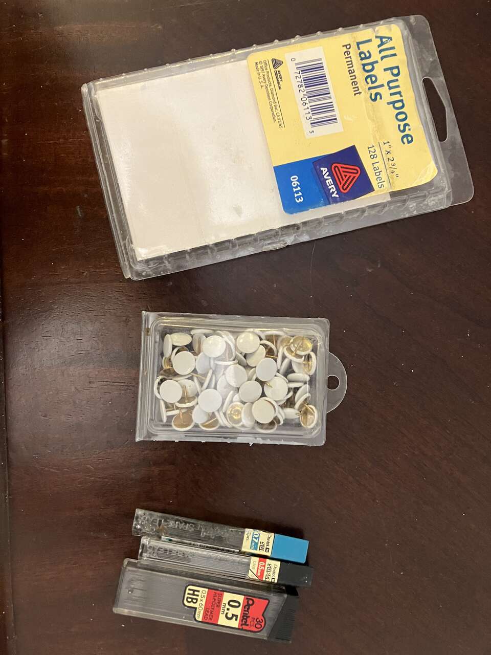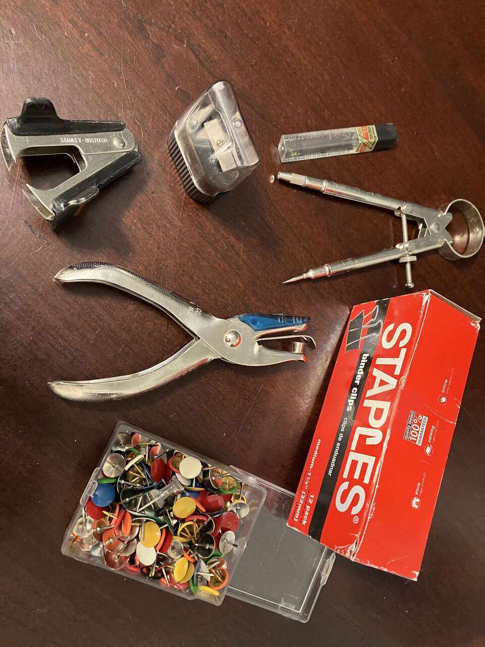 VenmoENVELOPES: ~872 TOTAL (SOLD)~ 3 CLIP BOARDS 9" X 12" with METAL TOP CLIP $3/set. Box of 12 Binder Clips, $1, Hand-held Paper Hole Punch $1; Compass w/lead refills, $2; Box of 100 Thumb Tacks $1; Box of 50 White Tacks $.50; White Labels $.50. Pencil Sharpener $.50. Cash/Venmo. In Sandy. 801-201-5350.