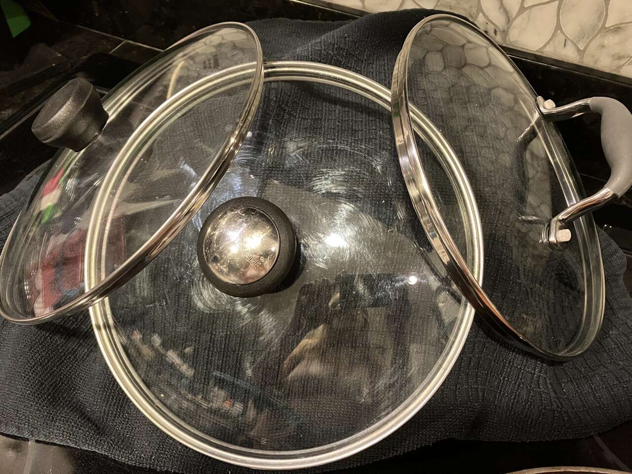 Venmo3 HIGH-QUALITY GLASS LIDS FOR 9.25" DIAMETER POTS OR PANS WITH HEAT-PROOF HANDLES. One Faberware Brand, One Analon Brand and one Generic Brand. $3 each. No Rust or Dents. Photo #3 is of 9.5 inch Aluminum Lid by Mirro with Heat Safe Black Lid Handle $3. Also, a plastic 4 sizes lid with steam vent. Black Heat Safe Top Lid Handle. Works for 6 inch, 7 inch, 8 inch or 9 inch pan. $3 Cash/Venmo. In Sandy. 801-201-5350.