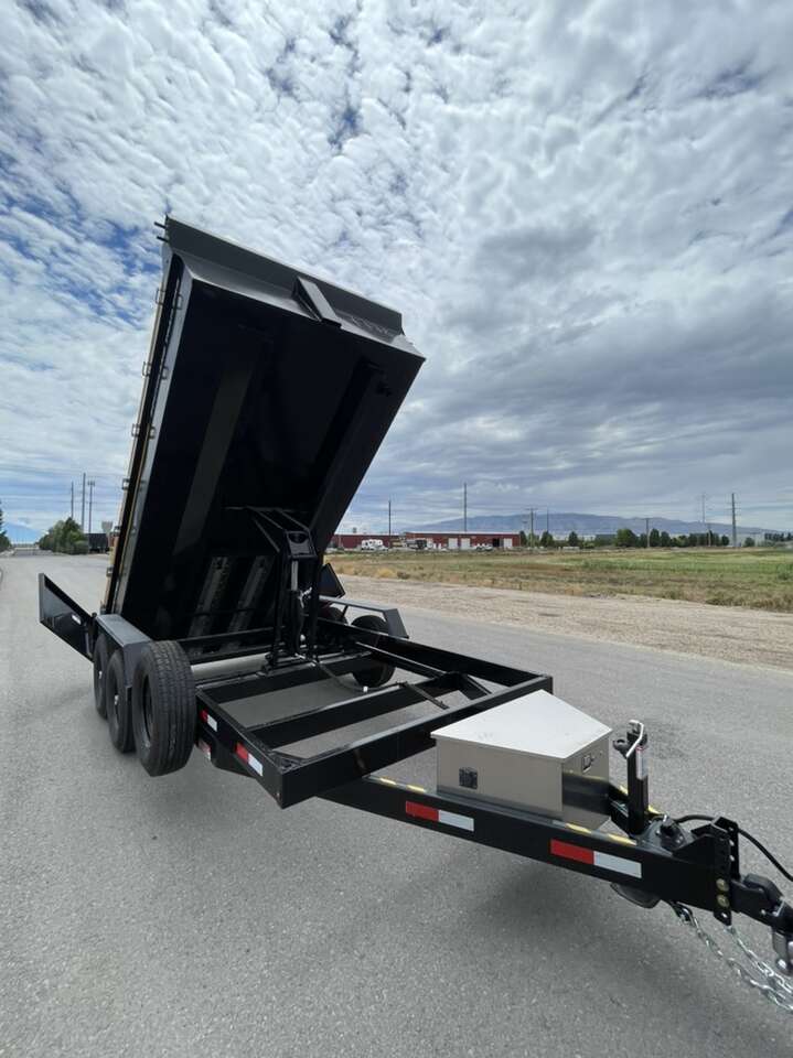Up for rent is my brand new dump trailer. It’s 14’ x 7’ with 3’ walls, full power tilt, retractable tarp, load stabilization, ramps and adjustable heavy duty hitch.