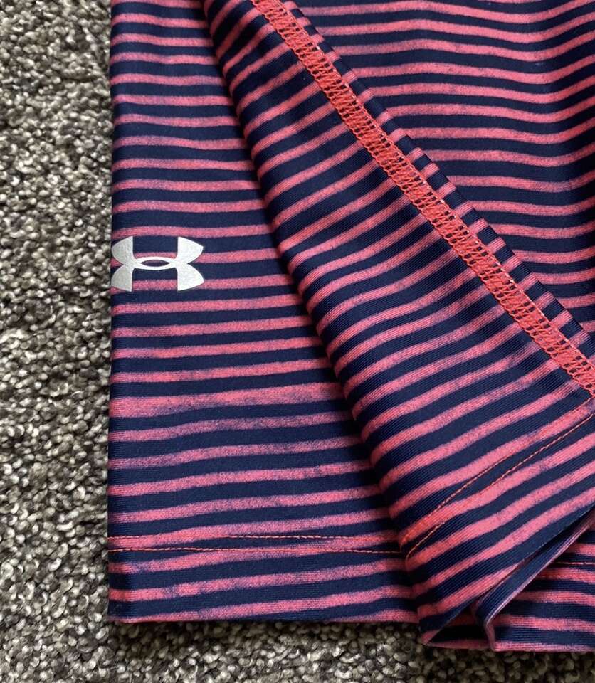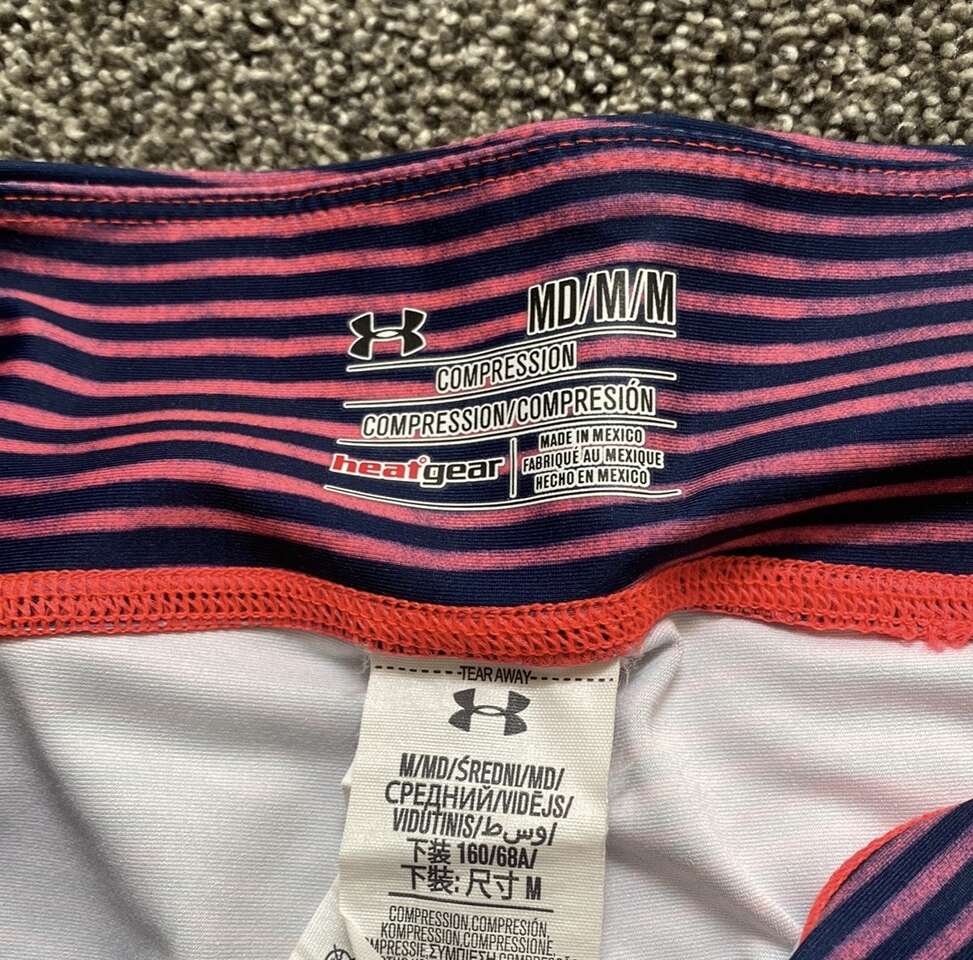 Under Armour women's size medium pink and navy striped cropped workout/athletic tights. Smoke-free, pet-free home. $10, cash only please.