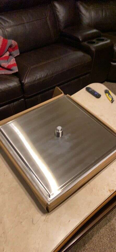 Brand new rain shower head just under 20 inches square. Made of brushed stainless steel.