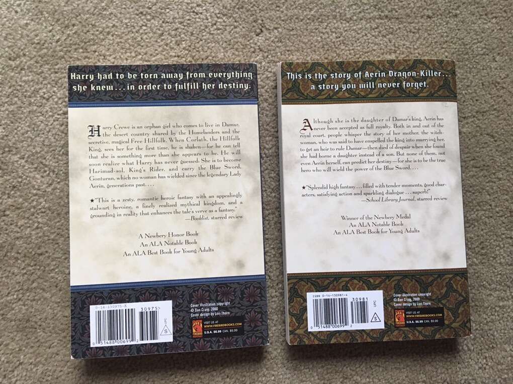 The Blue Sword (1982, 272 pages, Newbery Honor), and The Hero and the Crown (1984, 246 pages, Newbery Medal), by Robin McKinley. 2002 paperback editions of these classic young adult novels. The Hero and the Crown is a prequel to The Blue Sword. Very good condition. Text only. Cash or Venmo.
