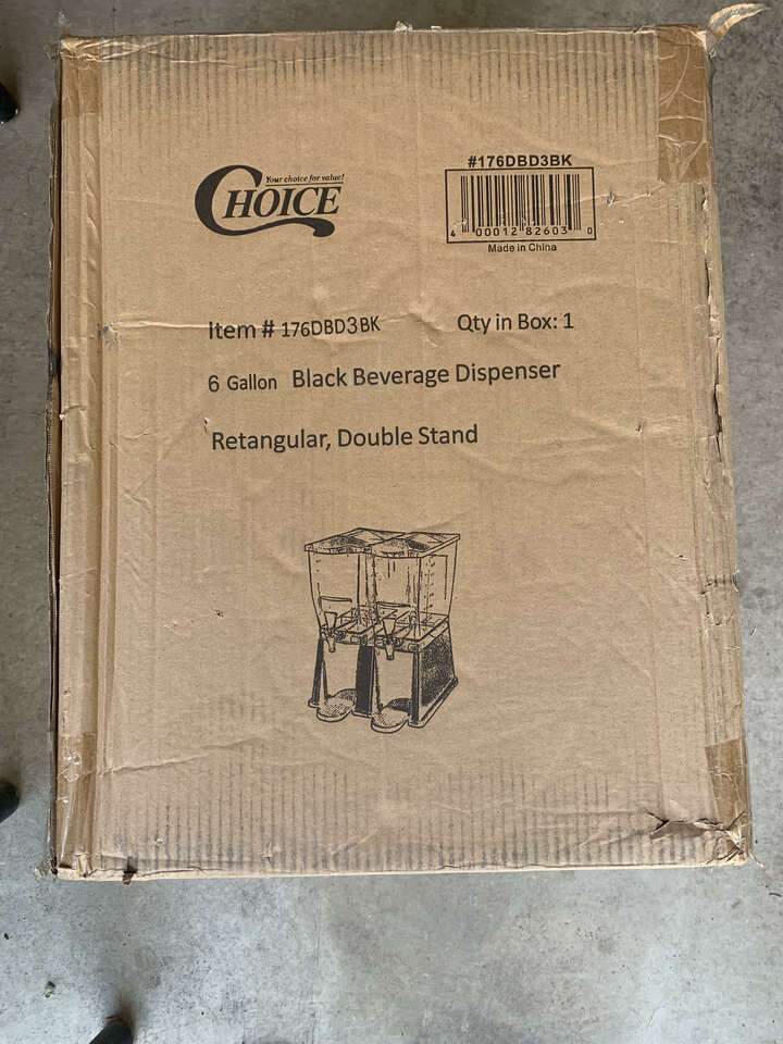 New in Box Choice 6 Gallon Black Beverage Dispenser Rectangular Double Stand