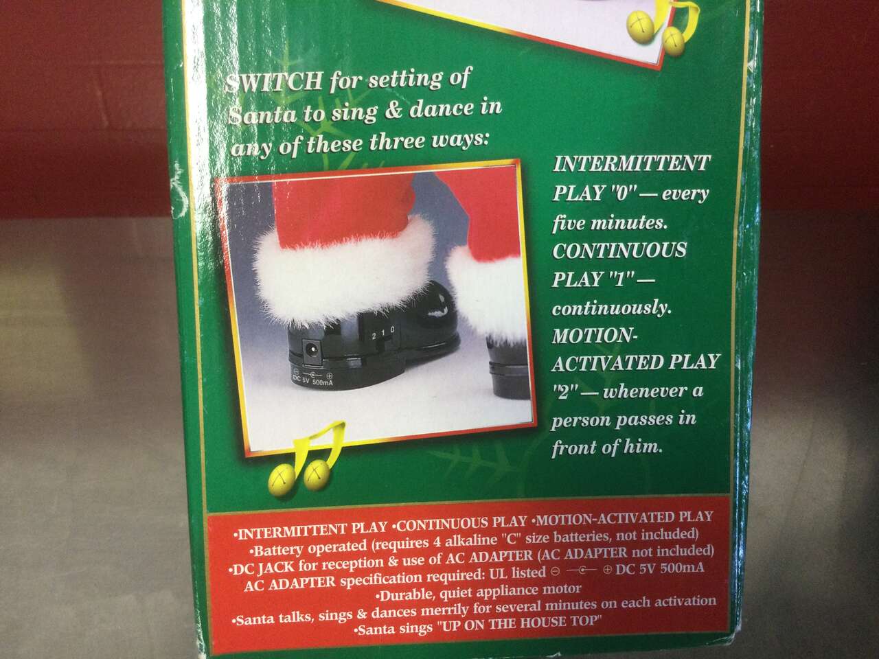 Sings, dances and is sensor activated. Very Good Used Condition. Box and packaging shows heavy wear. Works off of 4 "C" batteries (not included) Tested working.